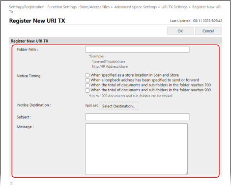 As definições de notificação registadas são adicionadas ao ecrã [URI TX Settings].