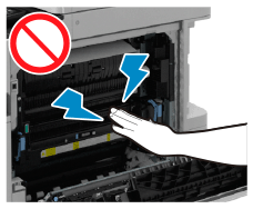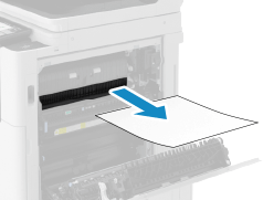 Puxe cuidadosamente o restante papel encravado na direção da seta.