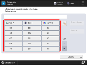 Кроме того, можно редактировать и удалять адресаты с помощью кнопок однокнопочного набора на экране сканирования (Сканировать и отправить) или факса.
