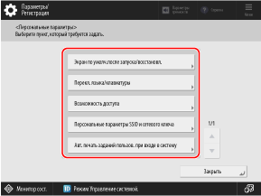 Можно изменить параметры (личные параметры), связанные с отображением экрана и эксплуатацией для каждого зарегистрированного пользователя. Эти параметры применяются только для изменившего эти параметры пользователя, который выполнил вход в систему, поэтому не влияют на настройки других пользователей.