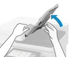 В случае с оригиналами на тонкой бумаге формата A3, B4, A4R или B5R поднимите фиксатор оригинала, чтобы избежать складок (только для Single Pass DADF-E).