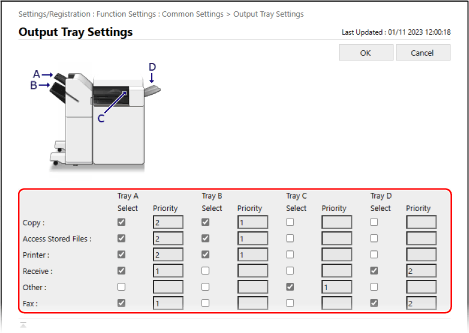 [Output Tray Settings].