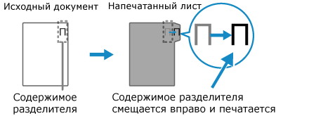 При копировании на часть с разделителем задайте положение печати части с разделителем, указав ширину коррекции, которая будет применяться к оригиналу разделителя.