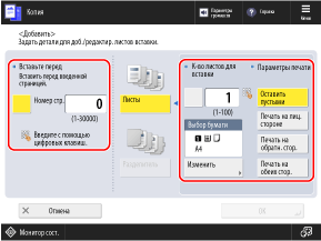 Нажмите кнопку [Номер стр.], чтобы выделить ее, и укажите номер страницы, куда нужно вставить бумагу, с помощью цифровых клавиш.