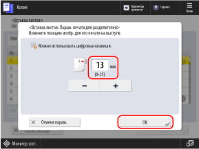 Настройка положения печати не требуется, если вы не копируете на часть с разделителем. Нажмите [OK] без настройки этого параметра и перейдите к шагу
