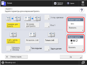 Обычно выбирается вариант [Сканиров. для буклета]. Если вы используете оригинал со страницами, которые уже упорядочены в соответствии с макетом буклета, выберите [Не сканир. для буклета].