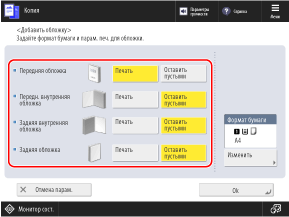 Кроме того, можно скопировать оригинал на обложку. Включите оригинал обложки в обычный оригинал, если требуется скопировать его на обложку.