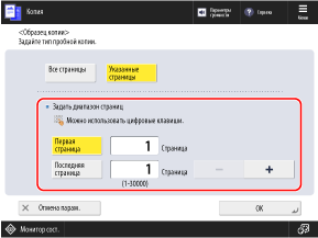Нажмите [Первая страница] и [Последняя страница], чтобы выбрать их, а затем введите значения.