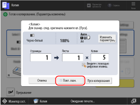 Прежде чем нажимать кнопку [Пуск копирования], еще раз введите количество копий с помощью цифровых клавиш.