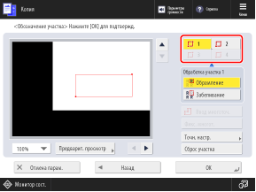 Чтобы повторно указать область, нажмите [Сброс участка] на экране [Обозначение участка: Ввод касанием] и повторите операцию, начиная с шага 5.