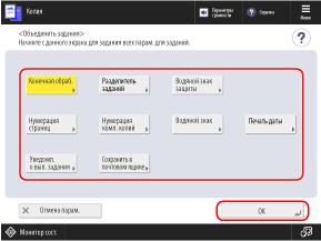 Задайте настройки копирования, которые следует применять ко всем оригиналам, и нажмите [OK].
