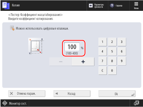Настройка коэффициента копирования оригинала