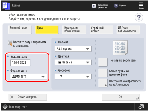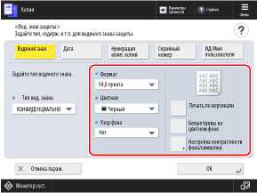 Чтобы настроить контрастность (баланс плотности) защитного водяного знака и фона, можно нажать [Настройка контрастности фона/символов].