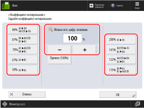 * При выборе параметра [Произв. формат] оригинал можно размещать только в устройстве подачи. При этом соотношение длин сторон является фиксированным и составляет 1:1 (100 %).