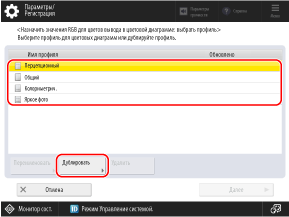 Выберите и продублируйте один из ранее зарегистрированных профилей в аппарате и создайте профиль для регистрации цветов, которые необходимо воспроизвести.