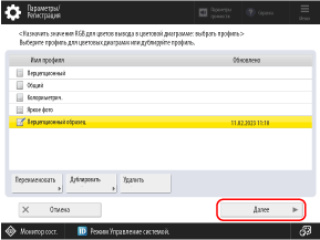 Выберите созданный профиль и нажмите [Далее].