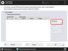 С помощью компьютера распечатайте на аппарате «Цветовую диаграмму для присвоения значений RGB выходным цветам в цветовой диаграмме» и см. диаграмму, чтобы зарегистрировать определенные цвета в профиле.