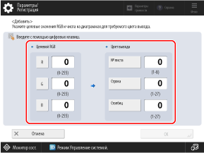 Введите значения цветов, которые следует зарегистрировать.