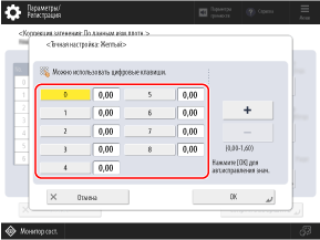 Измерьте образцы цвета 0–8 на пробной странице с помощью денситометра и введите измеренное значение плотности для каждого номера.