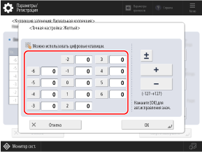 Используйте панель управления для выполнения полной настройки. Выполнить коррекцию с через Remote UI (Удаленный ИП) с компьютера невозможно.