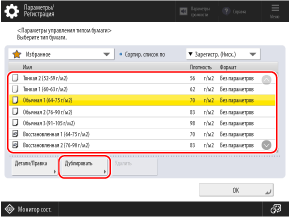 Выберите тип бумаги в списке и нажмите кнопку [Дублировать].