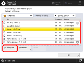 Выберите пользовательскую бумагу в списке и нажмите кнопку [Детали/Правка].