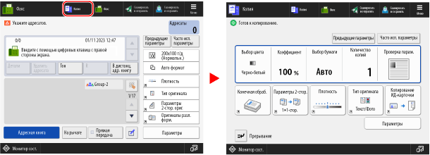Клавиши быстрого вызова отображаются всегда, поэтому функции можно вызывать, не возвращаясь на экран [Главный], даже во время работы с другими функциями.