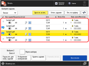 На экране печати также можно проверить содержимое защищенных данных или изменить параметры печати во время печати.