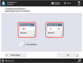 Нажмите [Изменить] в разделе [Формат оригин.], выберите формат оригинала, а затем нажмите [OK].
