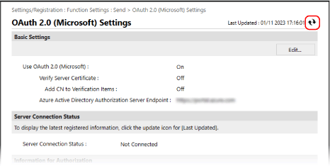 * При изменении установки текущей даты и времени после настройки параметров аутентификации OAuth 2.0, перенастройте параметры аутентификации OAuth 2.0.