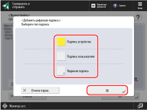 Нажмите клавишу [Добавить цифр.подп.] или [Добавить подп.устр.].