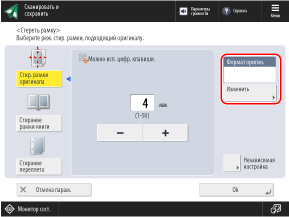 * Стирать рамку можно только при сканировании форматов, отображаемых на экране выбора формата оригинала.