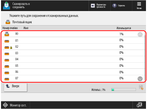Индикация [Используется] в правом нижнем углу экрана показывает общее использование всех почтовых ящиков.