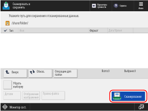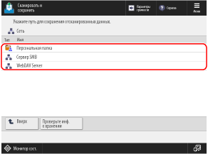 Место сохранения отображается на панели управления аппарата, таким образом можно подтвердить место сохранения и сохранить отсканированные данные.