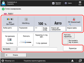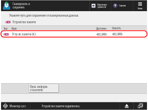 По окончании сканирования оригинала производится сохранение отсканированных данных. Нажмите [ Монитор сост.] для просмотра состояния сохранения и журнала. Проверка состояния отправки или сохранения и журнала отсканированных данных