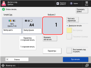 * Если выбрано несколько файлов, файлы печатаются в том порядке, в котором они были выбраны (по порядку номеров флажков).