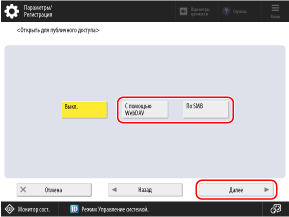 Чтобы использовать Супер-ячейка в качестве общедоступного места для хранения на аппарате, необходимо настроить параметры открытия Супер-ячейка в сети в качестве сервера SMB или WebDAV.