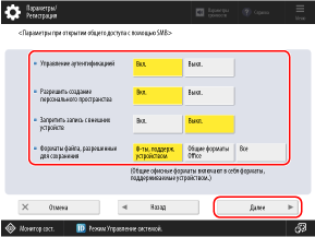 * Если для параметра [Управление аутентификацией] было установлено значение [Выкл.] на шаге