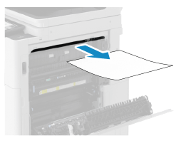 Если бумага замялась в реверсном блоке, аккуратно вытяните ее по направлению стрелки.