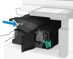 Удерживайте зеленый рычаг и сдвиньте внутренний финишер влево.