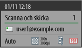 Visar antalet mottagare, mottagare*1, originalstorlek, upplösning, dubbelsidig och inställningar för filformat.
