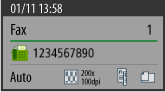 Visar antalet mottagare*1, mottagare, originalstorlek, upplösning, dubbelsidig och inställningar för filformat.