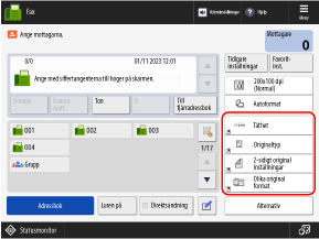 Anpassning av skärmarna för skanning, fax och kopiering