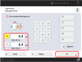 Ange värdena i [X] och [Y] och tryck på [OK].