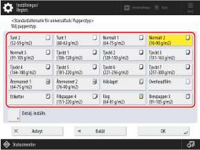 Välj papperstypen som ska användas.