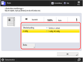 Du kan använda inställningsknapparna på den här skärmen för att ställa in kopieringsinställningarna.