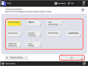 Konfigurera kopieringsinställningarna som ska tillämpas på alla original och tryck på [OK].