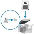 Du kan konfigurera inställningarna till att spara data från de kopierade originalen i maskinens brevlåda. Du kan även konfigurera inställningarna till att endast spara data utan att göra kopior.