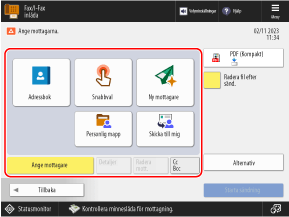 För att ange en e-postadress som en kopia eller hemlig kopia ska du trycka på [Cc Bcc].
