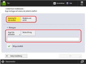 Även om du är borta från maskinen när data väntar på att skickas, kan du kontrollera sändningsresultatet via en dator eller mobil enhet. Du kan även konfigurera inställningarna så att meddelandet endast skickas när ett fel uppstår.